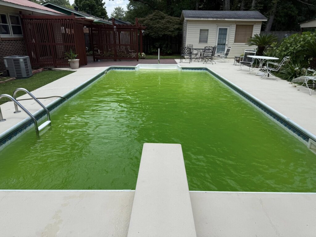 A green pool is not just unattractive—it can also be unsafe and harmful to your pool system. Algae buildup affects water quality, blocks filtration, and increases maintenance costs.